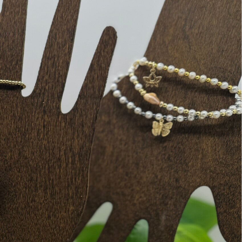 Price varies based on size of base beads and #of surrounding pearls. Prices start at $45* charms are optional and can be added/changed or removed off any design.